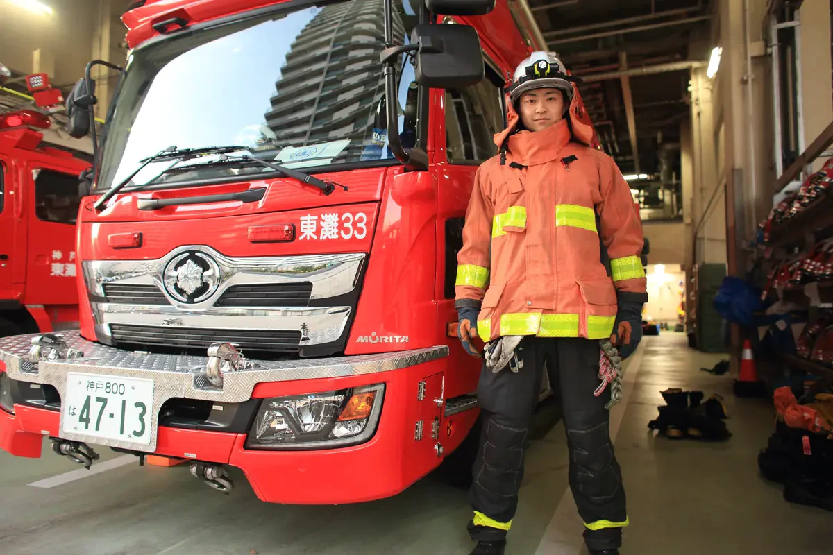 消防の仕事は上下関係が厳しい体育会系の職場だと考えていました。消防士を目指していた学生時代からその覚悟はあったのですが、実際に採用されるとそのイメージは覆されました。上司や先輩がとても親切で、いろんなことを丁寧に教えてくれるからです。考えてみると、新人の消防士一人ひとりがレベルアップする、させることが、神戸の消防力の底上げに不可欠なので、そのような指導が我々の組織文化として根付いているのだと感じます。 2025年10月からは消火活動が中心の消防隊でなく、人命救助を担う「救助隊」、いわゆるレスキュー隊員として働くことになりました。人命を救うために、自分の知恵と力の限界に挑戦する仕事なので、とてもやりがいを感じています。
